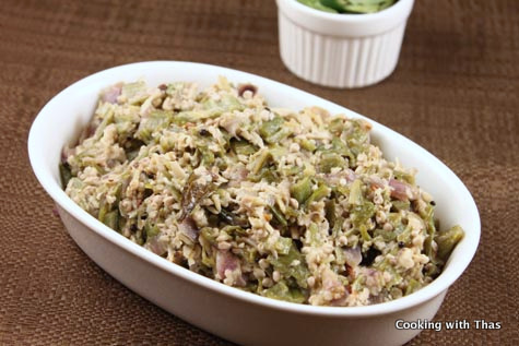 Okra in North America and Lady’s finger in Asia, also called as Gumbo in some countries. I don’t care about the name as long as it tastes the same. This is one of the veggies that I loved ever since I was a kid. My mom often makes Theeyal or okra in roasted coconut gravy, a true veggie delicacy. Besides this, we make okra stir fry and fried okra combined with yogurt. For making okra stir fry, there are two main variations. In both of them grated coconut is added. However in one of the stir fries, coconut is mixed with other ingredients as well, while in the other one grated coconut is added as it is. This recipe is an easy one, okra is combined with coconut and stir fried till okra looses it’s slimy texture and is slightly browned.