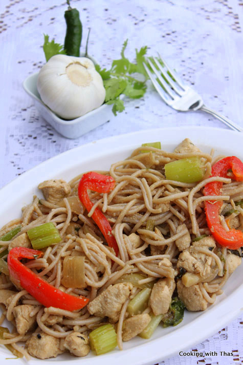 I fell in love with Thai cuisine the moment I tried it, in fact I just love all the thai dishes. Since I am not a native of Thailand, I really don’t have any family recipes that I can share with you all. Every time I taste different Thai dishes, I try to recreate them in my kitchen. I have a good understanding about the ingredients used and with some internet search I kinda recreate those dishes. I’d already shared the recipe for making Panang beef curry, one of my favorites. The other day, I’d tried pad kee mao at a Thai restaurant, which is called as drunken noodles and couldn’t resist trying it in my kitchen. I searched the internet for some good recipes and obviously I came across many. As always my criteria was easy to make recipes that taste good, and I found such a recipe. I didn’t wait too long, tried it in my kitchen right away and it turned out delicious. However, at most Thai restaurants pad kee mao will be very saucy, may be that’s why it’s called drunken noodle stir fry 🙂 The key ingredient that gives the aromatic flavor to pad kee mao is basil so if you are making this dish have lots of basil ready.