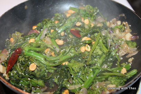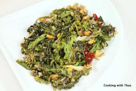 I stir fried the rabe rapini along with garlic, small onions and flavored it with soy sauce, finished it off with sesame seeds and peanuts. I wouldn’t say that it was totally bitter free, but the addition of brown sugar did help to cover up the bitterness to an extend. The truth is that it is a good source of Vitamin A, C, K, potassium, calcium and iron, may be this will encourage you to try this green.