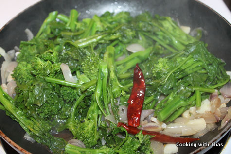 From Wiki, I learned that these greens are quite common in the cuisines of Southern Italy and China and are related to turnip family. It has a nutty, bitter and pungent flavor. I wasn’t that happy to read about the bitter part. Nevertheless, I did give it a whirl.