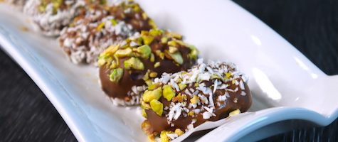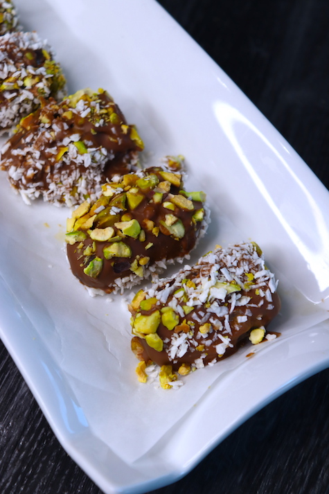 - Dip each date in melted chocolate, ensuring that it is completely coated.