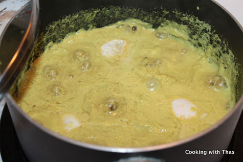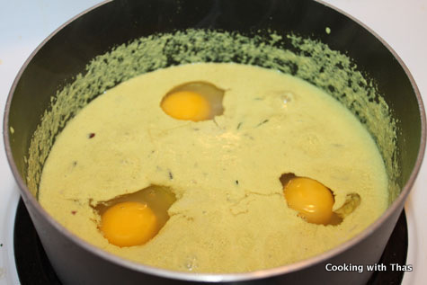 - Cover the pan and let the egg cook in the gravy for about 5 minutes or till eggs are cooked well.