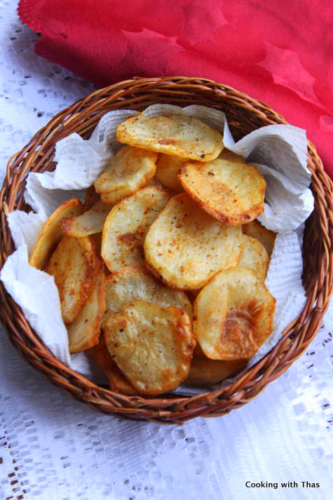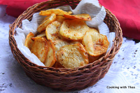Potato chips have been one of my biggest weaknesses, I can munch on it non-stop till my jaws get stiff. Every time I go for grocery shopping, one bag of potato chips always tags along with me. It’s high time I cut down on fried potato chips, hence I tried baking potato chips at home. I thought it’s going to be a disaster, but to my surprise it turned out to be crispy, crunchy and perfect.