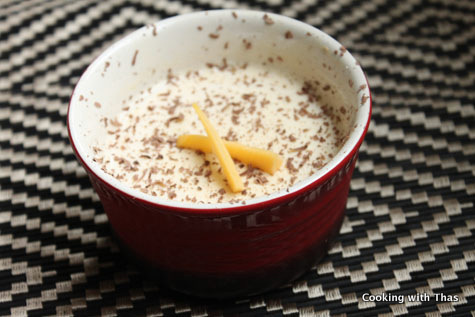 - While serving, garnish with grated semi-sweet chocolate.