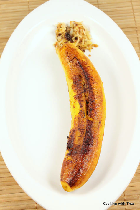 Whole plantain stuffed with a sweet filling
