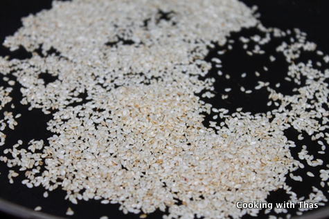 - In a non-stick pan roast the sesame seeds until it turns golden brown and keep aside.