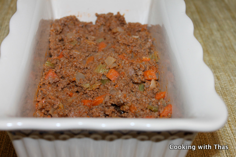 - In a baking pan, pour the beef filling as the lower layer into the pan and spread it evenly.
