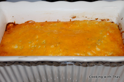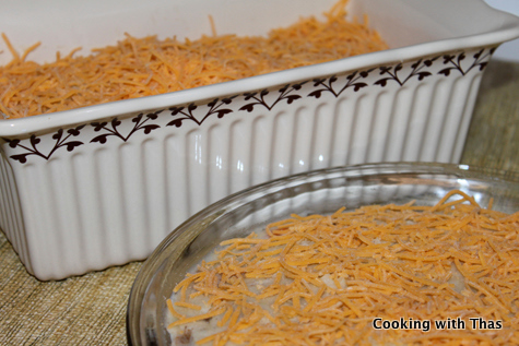 - Sprinkle the remaining 1/2 cup cheddar cheese over the mashed potatoes.