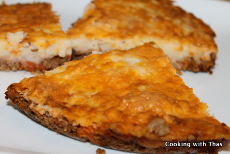 I was kind of confused about what to call this pie, cottage pie or shepherd’s pie. Wiki says cottage pie is a meat pie made with minced beef, while shepherd’s pie is made with minced lamb. Then, why am I calling this dish which has beef in it as shepherd’s pie? Well, it seems that in Ireland they call a pie which has beef in it as shepherd’s pie. Alright, I think I am safe now. Whether you call it cottage pie or shepherd’s pie or if you wish to give it a different name, it doesn’t matter as long as it has either minced beef or lamb topped with creamy mashed potatoes and lots of cheese sprinkled over.