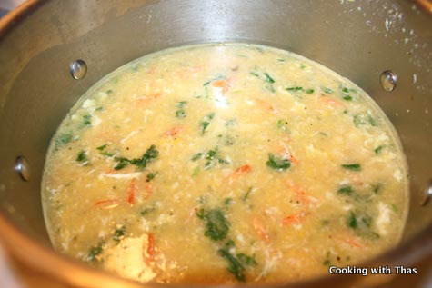 - If you don’t stir the soup while adding the egg, you won’t get the thread shape instead lumps will be formed.