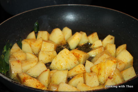 This is a very easy to make side dish, all you have to do is to marinate the diced potatoes and fry it in the oil till golden brown. Yumminess in no time. You can serve this along with any meals or as a fried snack to munch on.