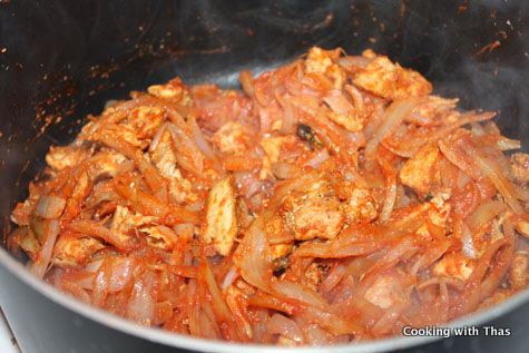 • Cover the pan and let the chicken cook well.