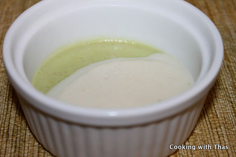 - Slowly pour this mixture on top of the avocado pudding that has already set in the refrigerator.