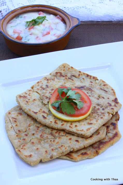 - Transfer to a plate and serve warm with raita (yogurt combined with grated carrot/chopped tomato/chopped onion along with salt).