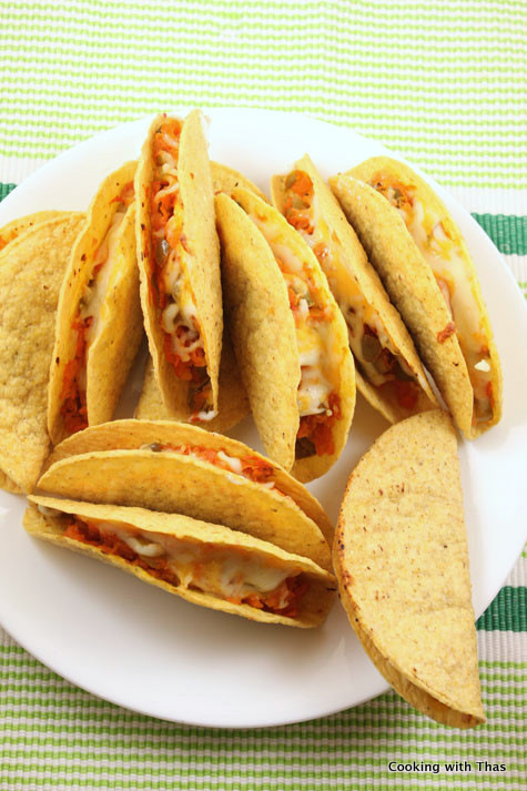 If you are planning for a veggie dish for this Superbowl, this would make a perfect appetizer. You could get the store bought crispy tacos, make the stuffing, stuff the tacos, top with cheese and bake it. It’s that easy and even the hard core non-vegetarians would sneak into it.