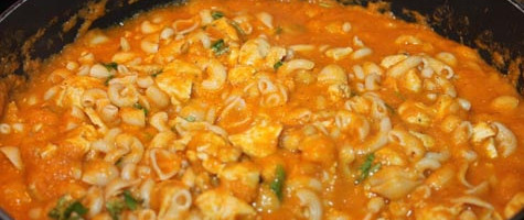 chicken-pasta in carrot sauce