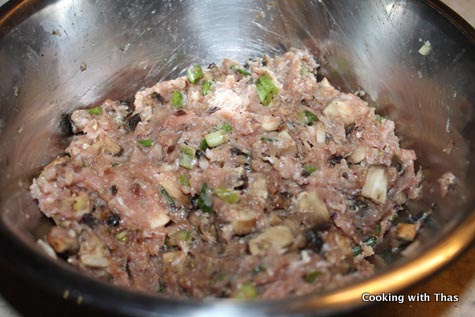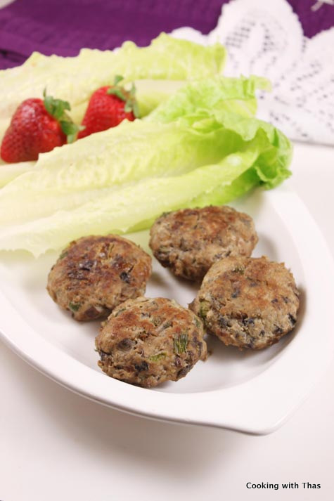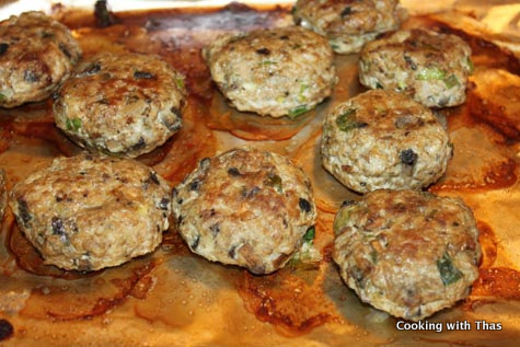 I got the extra lean ground beef, and then I thought about the ways to bake it. No, I wasn’t thinking about meat loaf at all. How about patties? Sounded good to me. I had brown mushrooms and so added it to the ground beef. Seasoned it with some aromatic spices and made patties out of it. Also, I didn’t add any eggs to the ground beef mixture. Yes, I tried to make it as healthy as possible.