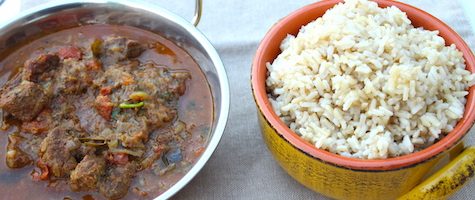 - Serve beef curry into a bowl and enjoy along with the perfectly cooked brown rice.