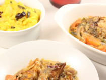 Kerala lunch recipes… Kerala Matta rice Varutharacha Meen Curry- Salmon in roasted coconut gravy, click here for recipe Fish like sardines, pomfret, sea bass, sea bream, king fish, salmon, can be added. For vegetarian version: add drumsticks-moringa or eggplant, click here for recipe Cucamelon Thoran, click here for recipe Tomato Pulissery, click here for recipe …